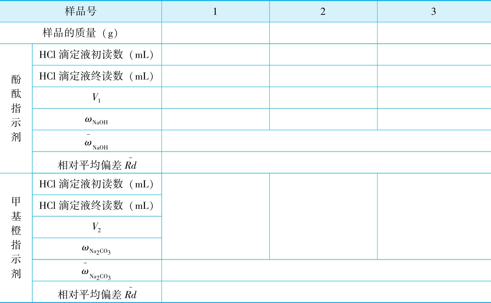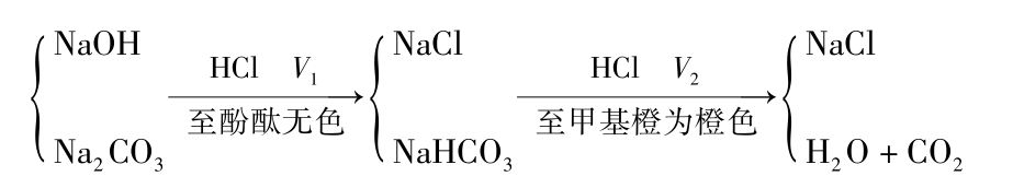 ④滴定突跃范围小。滴定突跃pH范围为7.76~9.70,比强碱强酸滴定突跃小很多。根据选择指示剂的原则,只能选用碱性区域内变色的指示剂,如酚酞或百里酚酞。