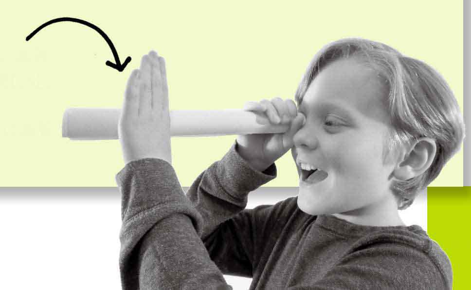 4.睁大你的双眼。让你的右眼通过圆管往外看,同时让你的左眼看着你的左手。你能看见左手上的洞吗?