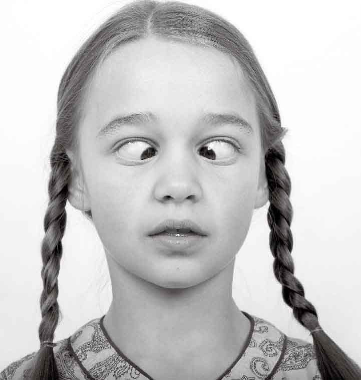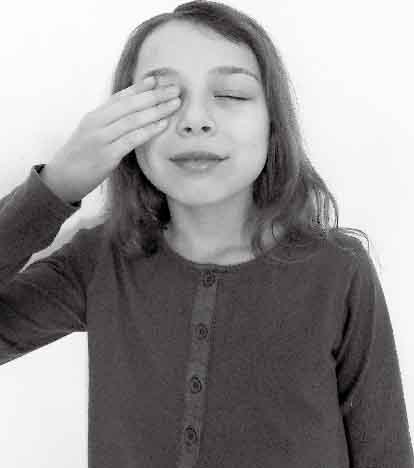 ★睁大你的双眼,竖起一根手指,保持在距离你面部大约30厘米的位置,然后将其缓缓移向你的面部,让你的眼睛始终盯着这根手指。当你的手指距离你面部大约1厘米时,保持不动。眼睛继续盯着手指。现在,你的眼睛应该已经变成斗鸡眼了。请一位朋友或兄弟姐妹帮你确认一下。