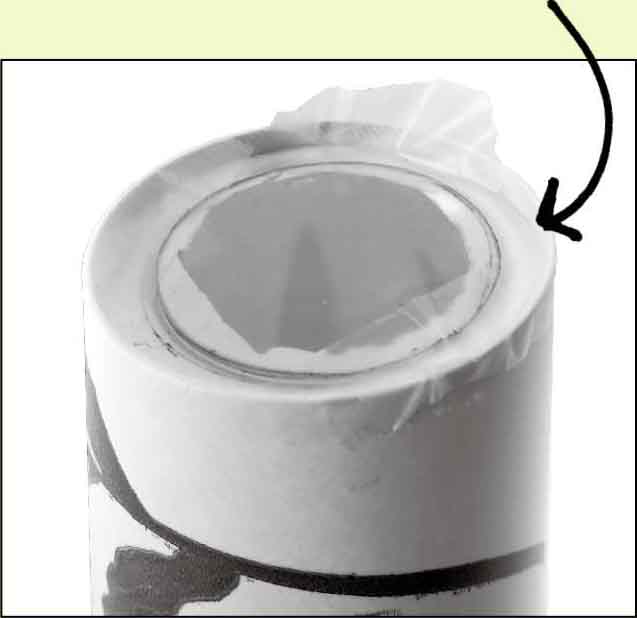 8.在纸筒的一端涂上少许胶水,然后粘上你刚刚制作的那个塑料圆盘。注意不要在圆盘上粘太多的胶水。你也可以使用胶带,但千万不要让胶带覆盖住大部分的圆盘。