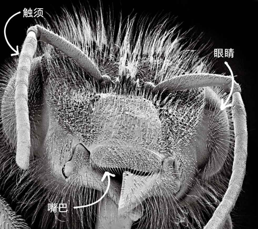 毛茸茸的眼睛 有些蜜蜂的眼球上长满了毛发。这些细小的毛发可以帮助它们判断风向并掌握自己的飞行速度。