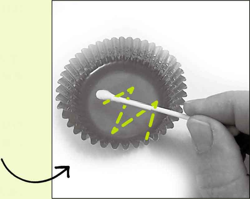 4.解开自封袋,用棉签按图片上的轨迹摩擦凝胶,然后将棉签扔进垃圾桶,最后封紧自封袋。