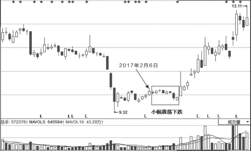 图1-4标示了此股在2017年2月6日之后的运行情况,个股仅仅是随大盘做了一波小幅调整,随即展开了较为独立的上攻走势,其上涨速度与幅度远强于同期的大盘。