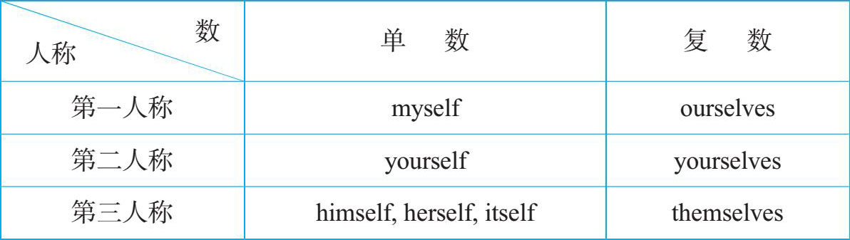 反身代词表示动作的承受者与动作的发出者是同一个主体,其具体形式参见下表: