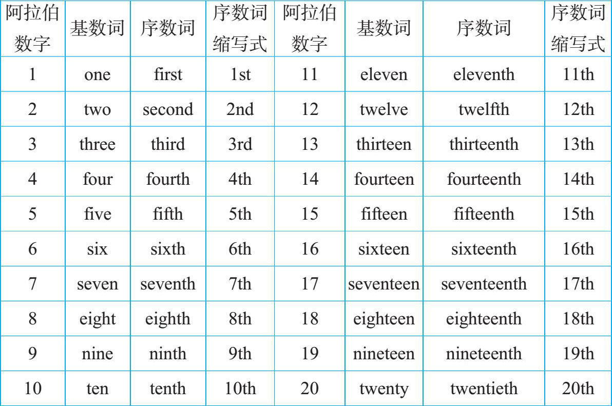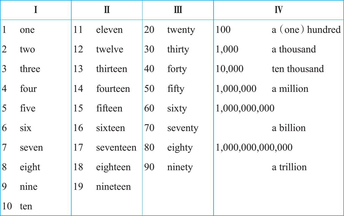 (2)表示数量的dozen(n.一打, 十二个)和score(n. 二十)可以视为基数词使用。例如:I want a dozen pencils, please! 劳驾,我要一打铅笔。// Scores of people attended the meeting. 有数十个人参加了这次会议。