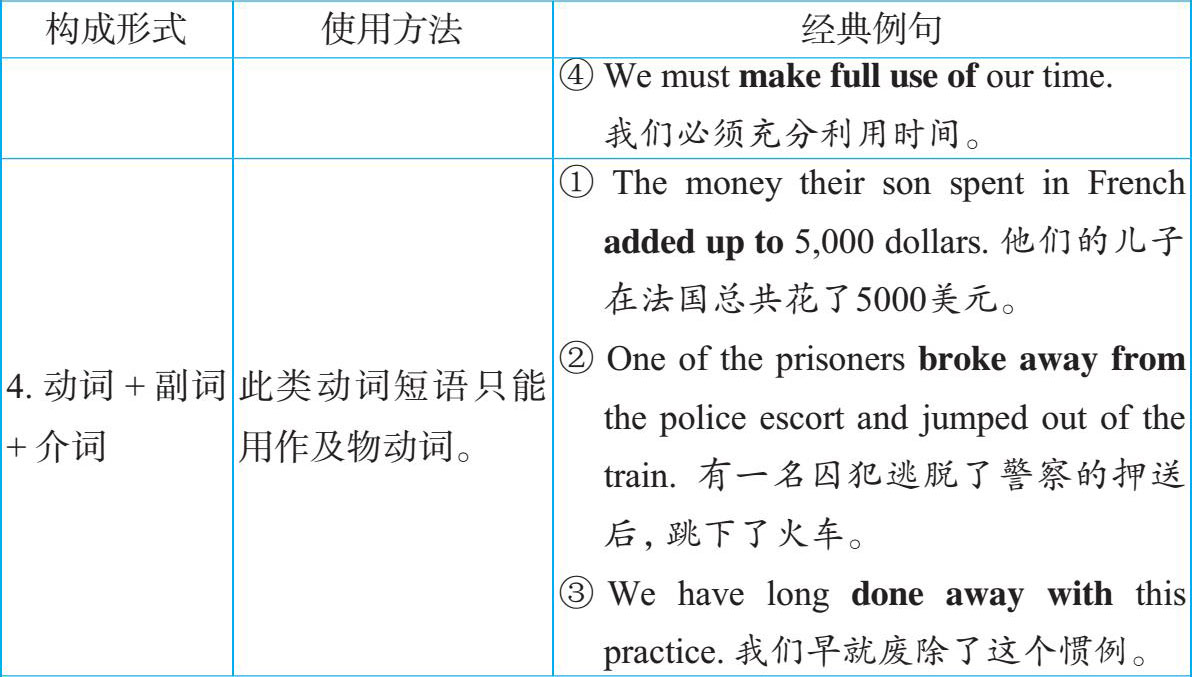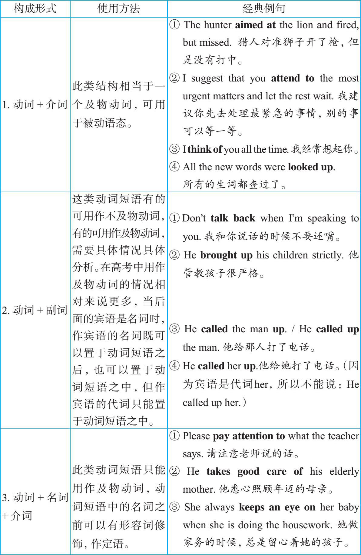 动词短语在高考中常见的具体构成形式详见下表的总结: