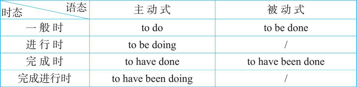 本章介绍的是非谓语动词的第一种形式——动词不定式(简称不定式),它是由不定式符号to+动词原形构成(在有些情况下to可以省略),不定式的否定形式是在不定式的标志to前边加not。