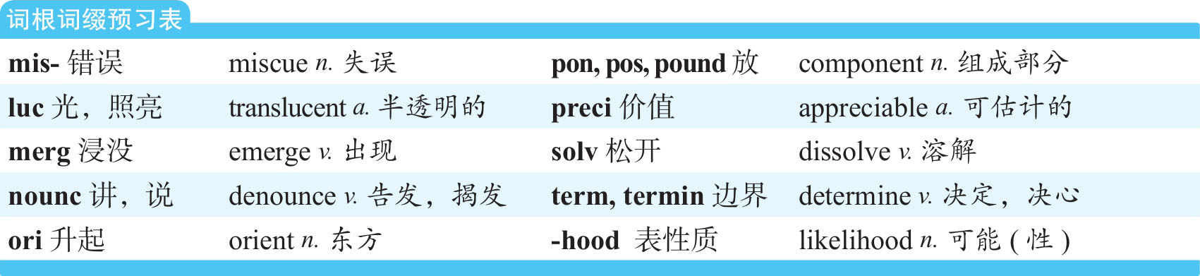 【记】 词根记忆:trans(穿过)+luc(光)+ent→光线能穿过的→半透明的