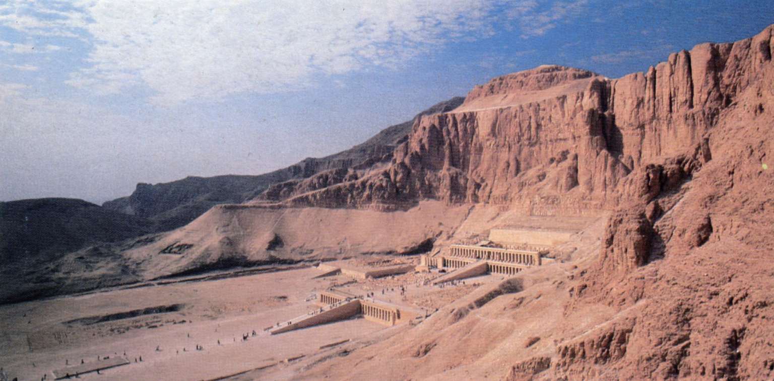 在坟墓近旁建筑的祭葬殿,例如塞加拉和吉萨神庙,为的是造就对神化的君主的崇拜。最杰出的一座是位于德尔—埃尔巴哈里的哈特谢布斯特女王祭葬殿 * 。它的建筑技术、比例、体积的明快都始终作为漫长的埃及历史中极为稳定的因素。这种持续性显示出循环出现的时间观念,由于它是重复的,因此它不是变化的载体。
