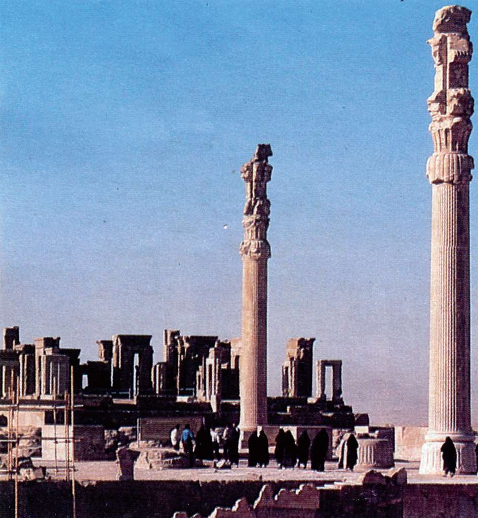 波斯人是在人造平台上建起巨大宫殿的。在中心的是由于巨柱林立而令人难忘的主殿“阿帕达纳”或王座所在的大殿。风格化了的雕刻以一种重复的节奏装饰着所有的立面。