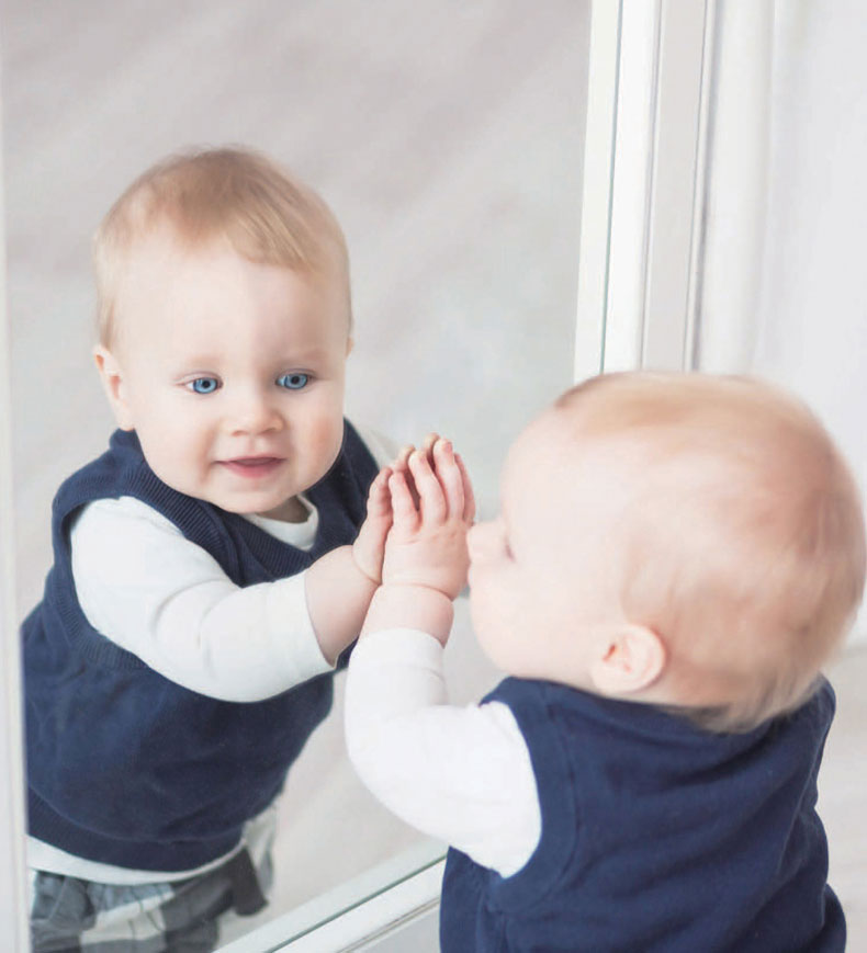 1.将镜子放在孩子面前,让他能够清楚地看到自己的面部。映象中不要出现其他景物。