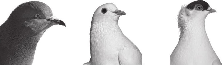 我们再以家鸽为例,假如将家鸽的现存族群与灭绝族群按亲缘关系进行排列,那么排列的结果与实际物种出现的时间顺序并不相符,与实际物种灭亡的时间也是 对不上的。因为作为亲种的岩鸽一直生存到现在,而岩鸽与传书鸽之间的中间类型已经灭绝了。变异出长喙这一特征的传书鸽,比同族变异出短喙的短面翻飞鸽时间更 早一些。这个例子虽小,却将上述问题解释得很清楚。