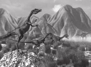 细颚龙:一种体形小巧灵活的恐龙,其骨骼与始祖鸟十分接近。