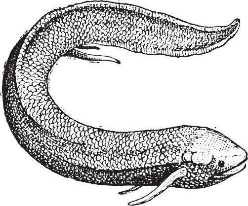 美洲肺鱼又称星点肺鱼,隶属于脊索动物门,鱼纲,双翼肺鱼目,美洲肺鱼科。美洲肺鱼是一种古老的鱼类,现分布于南美洲静水湖泊等地,为南美洲大陆的特 产鱼类。其身体结构独特,是研究鱼类进化的重要物种。肺鱼呈鳗形,被覆埋于皮下的细小圆鳞,胸鳍、腹鳍极端退化,只留一根分节的主轴骨,呈鞭状。在所栖水域 开始干涸时,肺鱼便部分改为肺呼吸;当完全干枯时,它就钻入淤泥中,进入休眠状态,完全用肺呼吸。干旱期过后,水位恢复,肺鱼就从泥中钻出,进行繁殖。卵产 在水底挖出的穴道中,雄鱼留在其中,守候受精卵到孵化成幼鱼。在此期间,雄鱼的腹鳍肥大,生出许多具有丰富血管的丝状物,可自血液中分离氧气,有利于其幼鱼 的孵化。