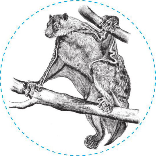 我们先来看松鼠科的动物。有的松鼠尾巴稍稍扁平,而理查森爵士描述的一些种类的身体后部逐渐变得宽阔,两肋的皮膜向外逐渐延伸。借助这些细微的改变,松鼠就有可能演化成所谓的 飞鼠 。皮膜将飞鼠的四肢及尾巴基部连接起来,形成类似降落伞的结构,这使飞鼠可以在空中远距离滑翔,如从一棵树滑到另一棵树。