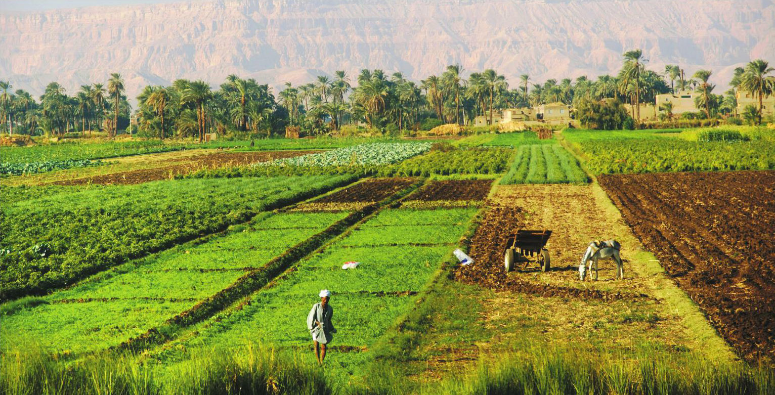 尼罗河谷地区土地肥沃、植被丰厚,不远处则是沙漠。吴国盛摄