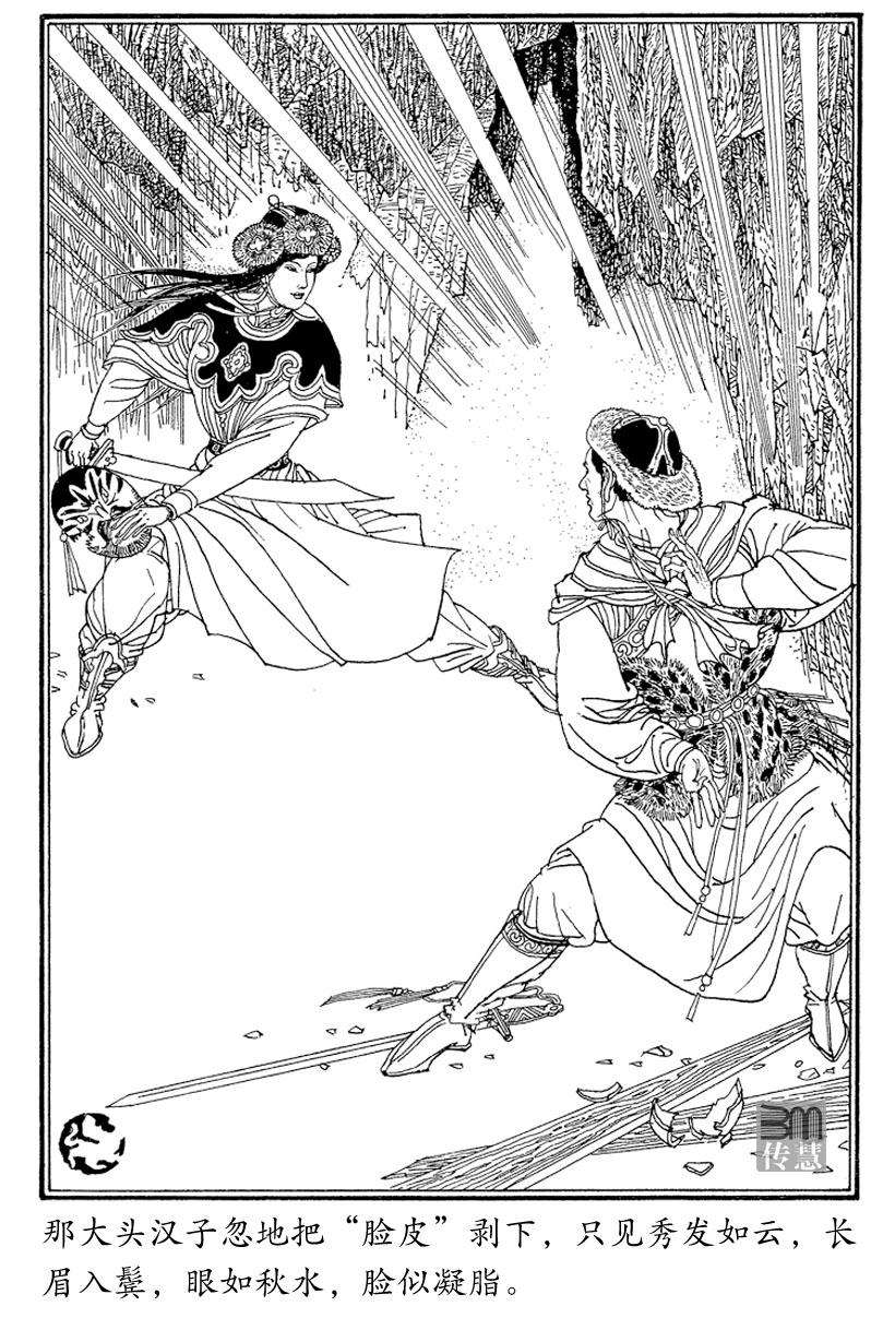 那大头汉子“脸皮”给他刺穿,忽地把“脸皮”剥下,只见秀发如云,长眉入鬓,眼如秋水,脸似凝脂。出现在他的面前是个十分美丽的少女!原来她是戴着面具的。鲁世雄早已知道对方是戴着面具,不过却不知道“他”是女子,而且是这样一个他有生以来从未见过的美女!