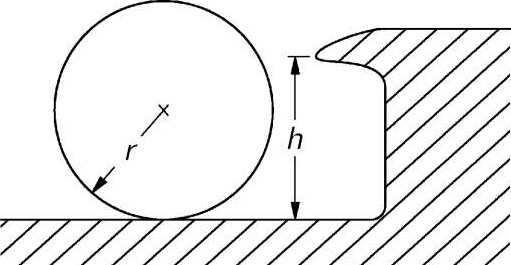 15.19 如图15-11所示,为使球以纯转动碰到台球桌内侧边的弹性衬里时以纯转动弹回,台球桌的边高 h 和台球半径 r 的比值 h / r 应为多少?假设在碰撞时台球边弹性衬里施于台球的力沿水平方向。