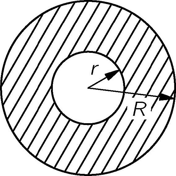 15.13 半径为 R 的球内含有一个半径为 r 的同心空洞( r < R ),如图15-6所示。在 r 与 R 之间,单位体积的质量是一常数 ρ 。求关于通过球心的转轴的物体转动惯量,分别以 r , R , ρ 和 r , R , M 表示。 M 为物体质量。
