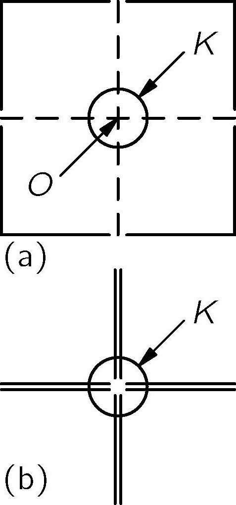 15.9 长度均为 L 、质量均为 m 的8根均匀细杆被固定在质量可以忽略的框架上,如图15-5(a)所示。正方形可以绕过 O 点、与框架所在平面垂直的无摩擦轴转动,角速率为 ω 0 (rad s -1 )。旋转中,装置在框架上的一个内部机械装置 K (具有绕 O 的补编转动惯量40/3m L 2 )将正方形收缩成图15-5(b)所示的十字架形状。求在此过程中,机械装置所做的功 W 。