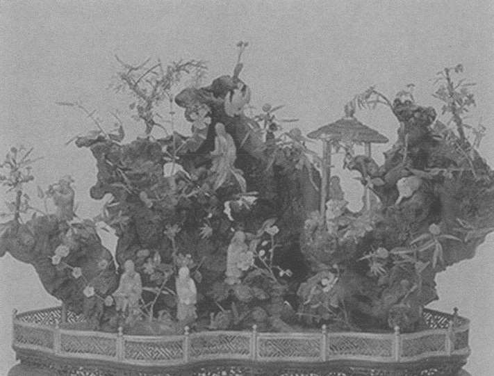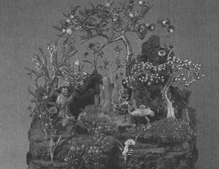 因为“嵌玉石仙人祝寿图盆景”和“ 孔雀石嵌珠宝蓬莱仙境盆景”具有真正现代盆景艺术的特征,因此它们无论在古代还是现代都是盆景艺术的代表作。