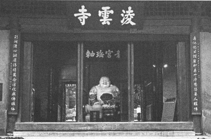 在凌云九峰环抱中还有一座辉煌的寺宇——凌云寺。凌云寺旧名报恩寺,因寺前有大佛所在,所以又叫大佛寺。据记载,唐代各峰皆建有寺庙,保存至今的佛寺只有凌云一座了。该寺之得名,主要是临江崖上凿成的一尊弥勒佛坐像,它就是名扬中外的乐山大佛,又称凌云大佛。因此,人们又多把山上的凌云寺称为大佛寺。凌云寺始建于唐初,据《方舆胜览》记载:“会昌前,峰各有寺”,可见会昌以前信佛之风的盛行。但到会昌年间,由于唐武宗李炎扬道抑佛,下令灭佛,凌云山寺庙仅凌云寺得以“工作精妙”而保存。唐代著名诗人、嘉州刺史岑参曾做诗赞叹:“寺出飞鸟外,青峰载朱楼。”“如知宇宙阔,下看三江流。天晴看峨眉,如在波上浮。”可见当年凌云寺的巍峨宏大。凌云寺寺门高踞,飞檐凌空,红墙碧瓦,巍峨壮观。寺门正中高悬巨大金匾,上集苏东坡书“凌云禅院”四字。两旁联文是“大江东去,佛法西来。”此联言简意赅,既使人有佛法庄严之感,又表明了凌云寺所踞地理位置,还巧妙地将“大佛”两字嵌于其中,显示了这座千年古刹的不凡气势。凌云寺后废毁于元顺帝战乱,明代进行了两次较大修复,明末又被毁。现存的凌云寺绝大部分是清康熙六年(1667年)重新修建的。后来又经多次修葺,尤其是新中国成立以后的不断维修,我们才能看到今日的景象。殿门两侧分列着四座记事石碑,记载了历代重修的经历。凌云寺主体建筑由天王殿、大雄宝殿、藏经楼等部分组成,各为一重四合院,布局严整,丹墙碧瓦,绿树掩映。大门匾额“凌云寺”为清末著名书法家赵熙先生所题,为此在民间还留下一段佳话。天王殿前是参天古木楠树,盛夏季节,清荫宜人。殿外两侧分列着四座明清两代重修寺宇的碑记。殿内正中塑像为弥勒坐像,皤腹欢颜,俗称“大肚罗汉”。两旁分列四大天王塑像,攒眉怒目,威武雄壮。天王殿后为韦驮殿,供奉木雕装金的护法神韦驮。穿过天王殿,为明代建筑大雄宝殿,是僧众举行宗教活动的主要场所。殿内正中端坐释迦牟尼三身像(今身、应身、报身),造型优美,神态庄重。两旁分列十八罗汉,神形各异,栩栩如生。大雄宝殿背面是新塑的净瓶观音,两边分列文殊、普贤、地藏和大势至四菩萨像,是明代以前的作品。寺内最后一重殿是藏经楼,原为寺内收藏佛教经卷的地方,于1930年新建。从它的结构和外形可以看到近代建筑风格,在寺宇中别具一格却另有一番情趣。楼下新辟“海师堂”,塑有大佛建造者海通法师、章仇兼琼、韦皋的全身像,以此寄托后人对他们的敬仰之情。目前,凌云寺已开辟成“乐山大佛陈列馆”,馆内陈列大量实物、文献、图片和模型,展示了乐山大佛九十年建造史和历代保护维修史。