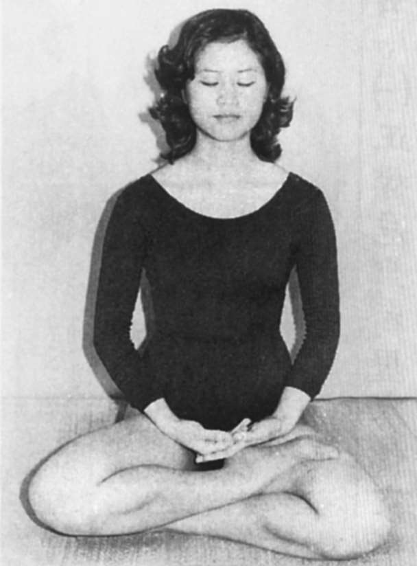 (一)双足跏趺(双盘足)。如果不能双盘,便用单盘。或把左足放在右足上面,叫做如意坐。或把右足放在左足上面,叫做金刚坐。开始习坐,单盘也不可能时,也可以把两腿交叉架住。