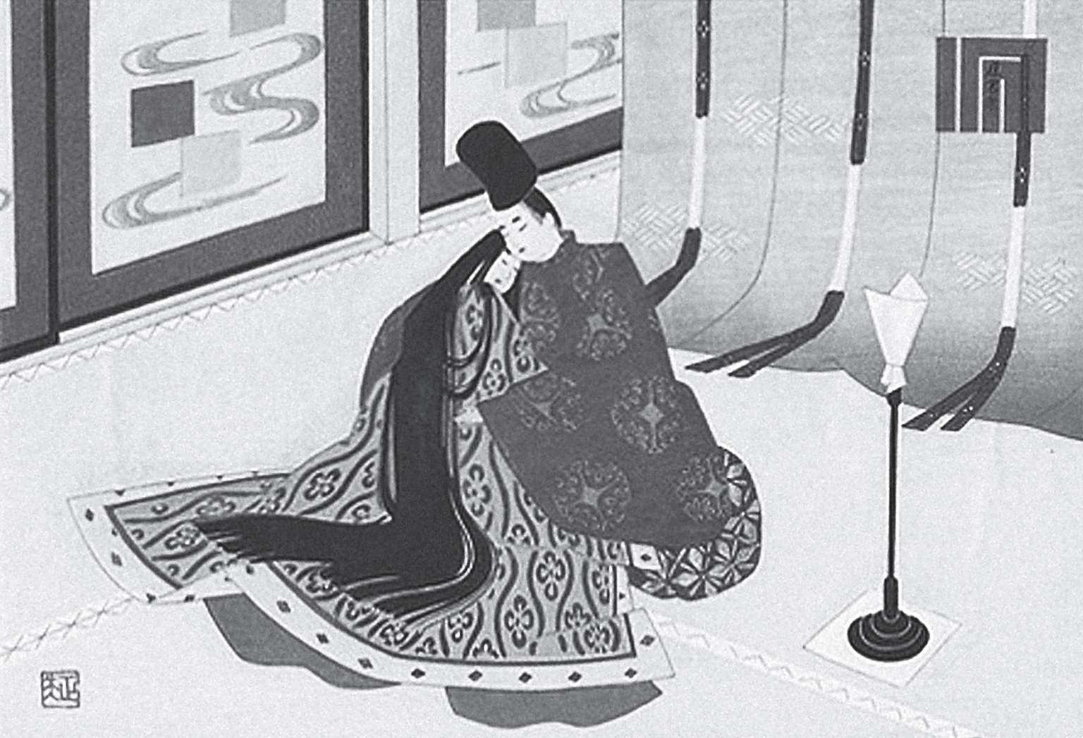 且说空蝉,只道源氏公子近来已淡忘了她,不免感到高兴;然则那晚梦一般的情景,始终萦绕于心,使她悲愁哀叹,寝食难安。那轩端狄睡在她身边,因心中无甚牵挂,倒下便酣睡过去了。这空蝉正郁郁难眠,忽觉着有股薰香扑鼻而来,似是有人走近,顿觉有些奇怪,便抬起头来察看。从那挂着衣服的帷屏的隙缝里,分明看得一个人正从幽暗的灯光中走来。事情太过突然,在惊恐中,她急急起身,将一件生绢衣衫披上,轻轻溜出房间去了。