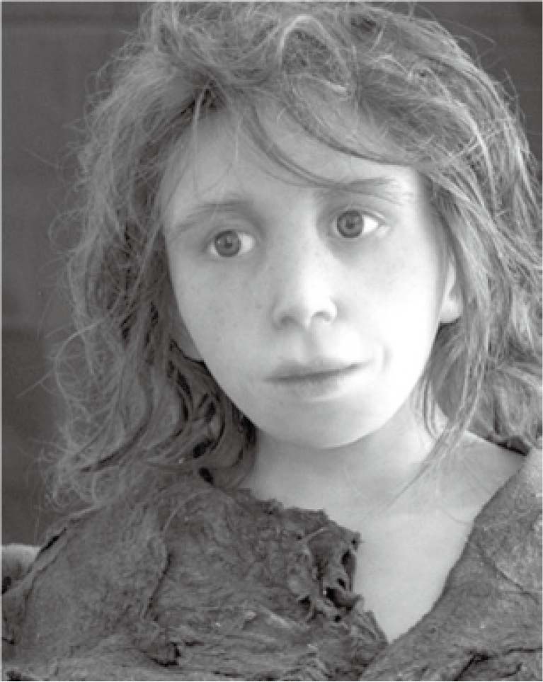 图3 推测的尼安德特男孩样貌重建图。基因证据显示,至少某些尼安德特人可能有白皙的皮肤、柔顺的头发。