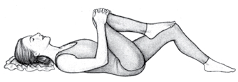 做法: 以仰卧的骨盆抬起动作作为开头,慢慢地将一条腿的膝盖抬至胸部,用手抓住膝盖,轻轻地往胸部拉。保持5秒钟,随后放松。每条腿做10次。再次将一条腿的膝盖抬至胸部,这次当抵住胸部时,另一条腿伸直放平。持续几秒钟,然后回到起始动作。每条腿重复10次。最后进展到双膝碰胸:慢慢地先将一个膝盖拉向胸部,接着另一边。用手将两膝拉至胸前。持续5秒钟,然后放松,慢慢放下一条腿,然后另一条。重复10次。