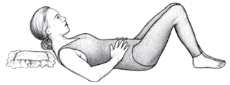 做法: 仰卧,双膝弯曲并拢,两脚放平。(你可能会想在脑袋下放个小枕头,但不放也没关系。)慢慢吸气,让肚子鼓起,然后一边呼气一边收紧腹部肌肉,使腰背部平贴地面。持续5秒钟,放松,然后重复10~15次。