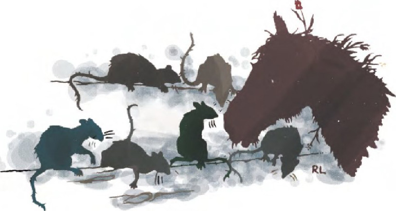 我们住在非常老旧甚至还漏水的底舱中,可这条船居然被称为“光荣”号。底舱没有灯,空气稀薄。我们睡在发霉的干草上,吃同样发了霉还长满象鼻虫的粮食。至于喝的水,我简直难以形容。老鼠四处乱窜,大摇大摆地在我们眼前吃东西,甚至啃我们的蹄子,使我们难以入睡。马厩从没被打扫过,更别提给我们清洗和梳理毛发了。