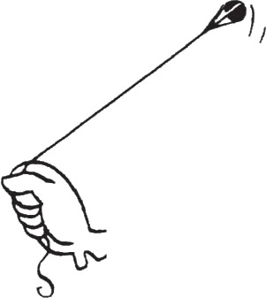 其实,说到离心力,远不止刚才实验中提到的这一种。如图3所示,如果我们在一条绳子的一端系上一块石头,并且把石头甩起来,我们会感觉绳子绷得很紧,就像要断掉似的,这其实也是离心力的作用。