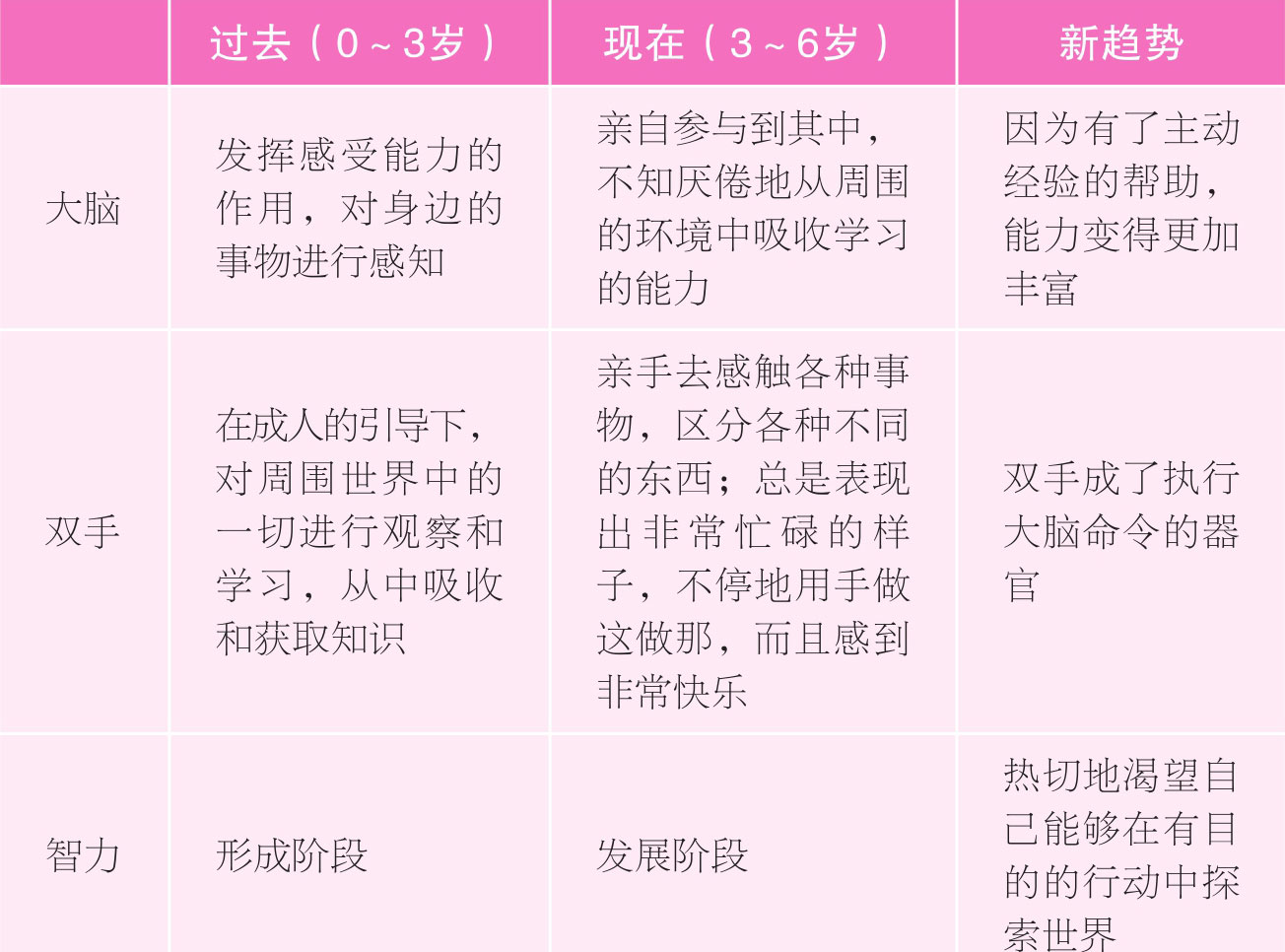 3~6岁这个阶段的孩子,总是表现出非常忙碌的样子,不停地用手做这做那,而且感到非常快乐。