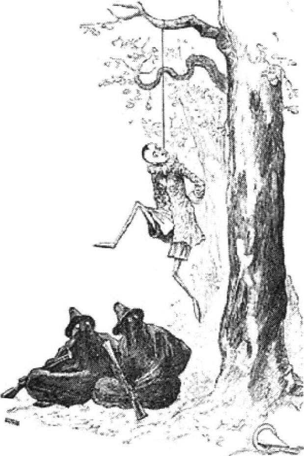 两个劫匪说干就干。他们首先把皮诺曹的两只手捆绑起来,再把绳子勒到脖子上,打了个只要一挣脱就会勒得更紧的结,最后把他吊在了一棵大橡树上。
