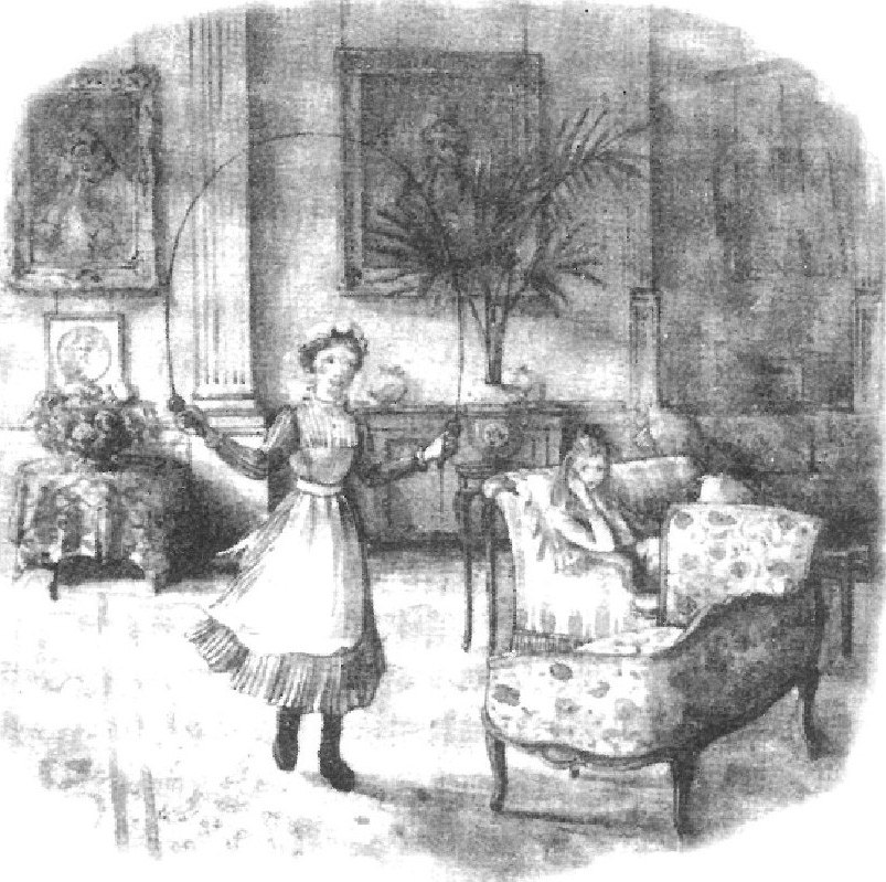 晚间,一家人在火炉边围拢着坐下,玛莎和妈妈缝补着破了的衣服和袜子,玛莎和他们谈起了庄园里刚从印度来了个小女孩,说她自出娘胎就由大家常说的“黑人”服侍着,袜子都不会自己穿。