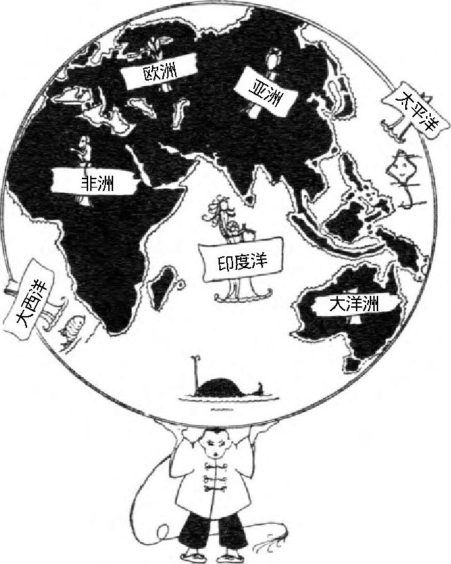 地球上除了如黑影一般的大陆和积雪之外,其他地方都是水。环绕着大陆的水就是大洋,尽管大洋之间既没有墙也没有栅栏将它们隔开,但我们还是给这些大洋起了不同的名字。