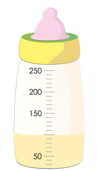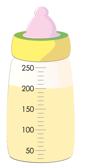 下面我们将宝宝1岁之内每天吃奶量和哺喂次数用奶瓶的刻度表现出来,让妈妈一目了然。