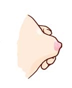 1 拇指在上,其余四指在下面托住乳房,握成一个C形。将拇指和食指及中指放在乳头后方2.5~4厘米处。以乳头为中心,挤压半径约3厘米的区域。