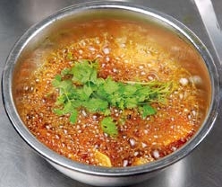 炒锅烧热后加菜籽油6成热后放豆瓣酱炒出红色后,加入姜末、辣椒面、花椒粉炒香。