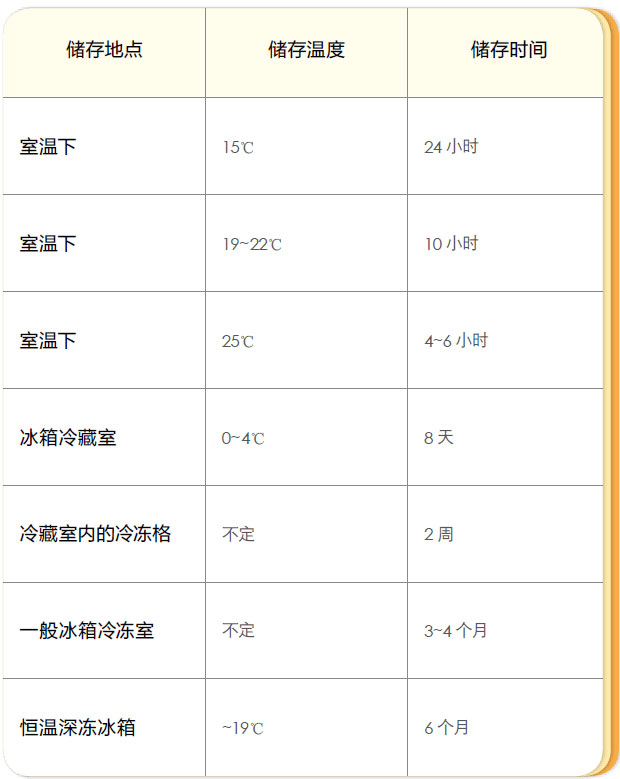 冷冻下可保存3~6个月。
