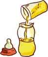 将解冻好的母乳倒入宝宝的奶瓶里。