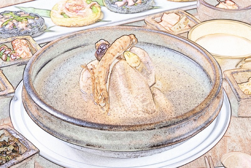 再从日常饮食来讲,韩国人以米饭为主食,还有许多韩国菜肴十分有特色,例如:烤牛肉、参鸡汤、大酱汤、泡菜、八珍菜等。韩国美食菜品以清淡为主,虽然不算很多,但是每一种菜品都十分可口。韩国人认为,喝参鸡汤能够凉补,适合炎热的夏季食用,而马铃薯和荞麦制作的冷面属于温补的食品,适合在寒冷的冬季食用,所以他们喜欢在冬季吃冷面,而在夏季喝参鸡汤。