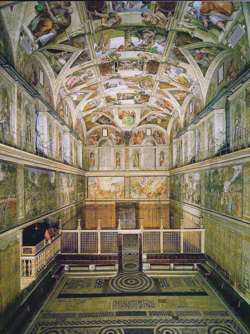 西斯廷教堂于1445年由教皇西斯都四世发起建立,因此该教堂的名字“西斯廷”也源自于教皇的名字“西斯都”。西斯廷教堂长40.25米、宽13.41米、高18米,是以60∶20∶30的比例按照《列王纪》第6章中所罗门王的神殿建造的。该教堂既是罗马教皇选出仪式的举行地,也是其私用经堂。