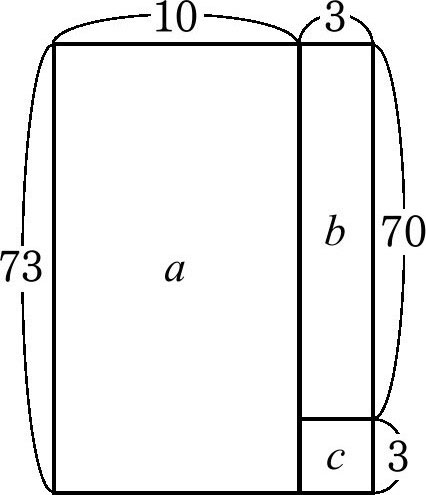 看图即可发现,a的面积为730,b的面积为210,c的面积为9。将所有和相加,得到949的答案。