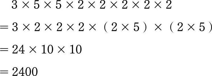 (3)我们基本上都知道25×4=100,那么75=3×25,32=4×8,3×8=24,后面再添两个0即得2400。