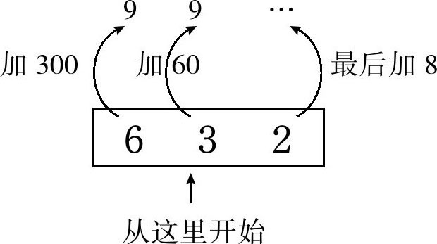 首先,632只要加300,百位数就能到900,而再加60,十位数就能到90,这样就有360了。