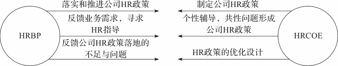 具体地说:①HRCOE制定的公司人力资源政策,需要业务现场的HRBP落实和推进,从而使自上而下的整个人力资源管理体系保持一致;②HRBP贴近业务现场,在工作中遇到自己无法处理的情况或需要公司人力资源管理制度支持时,可以向HRCOE反馈。HRCOE一方面提供给HRBP个性化的咨询和指导,另一方面把公司诸多HRBP反馈的问题汇集起来,研究、设计并提供新的人力资源管理解决方案,通过优化制度来解决业务现场普遍存在的问题,尽量规范管理制度,提高工作的统一度和标准化,从而提高整体的人力资源管理效率。这里也包括,HRBP需要提出并将发现的人力资源管理方面的问题交付给HRCOE,以便其设计出更加合理的工作流程交付给HRSSC。③在制度推广中,HRBP通过员工的反馈,了解制度的可行性及可操作性,发现制度的不足和问题,提出制度和流程的优化建议并反馈给HRCOE,帮助HRCOE完善公司的HR政策制度。