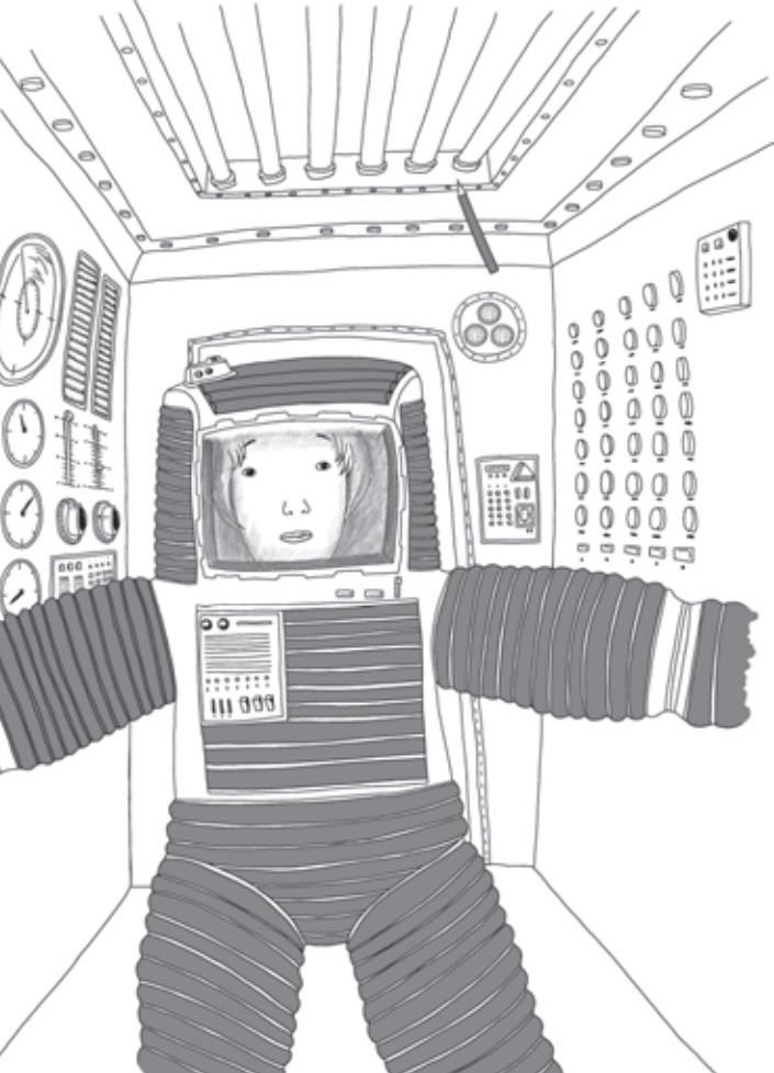 这天夜里的梦境中,我看到了她,穿着太空服在那间小控制舱中,眼里含泪,向我伸出手来喊:“快带我出去,我怕封闭!”我惊醒了,发现她真在喊我,我是戴着她的眼睛仰躺着睡的。