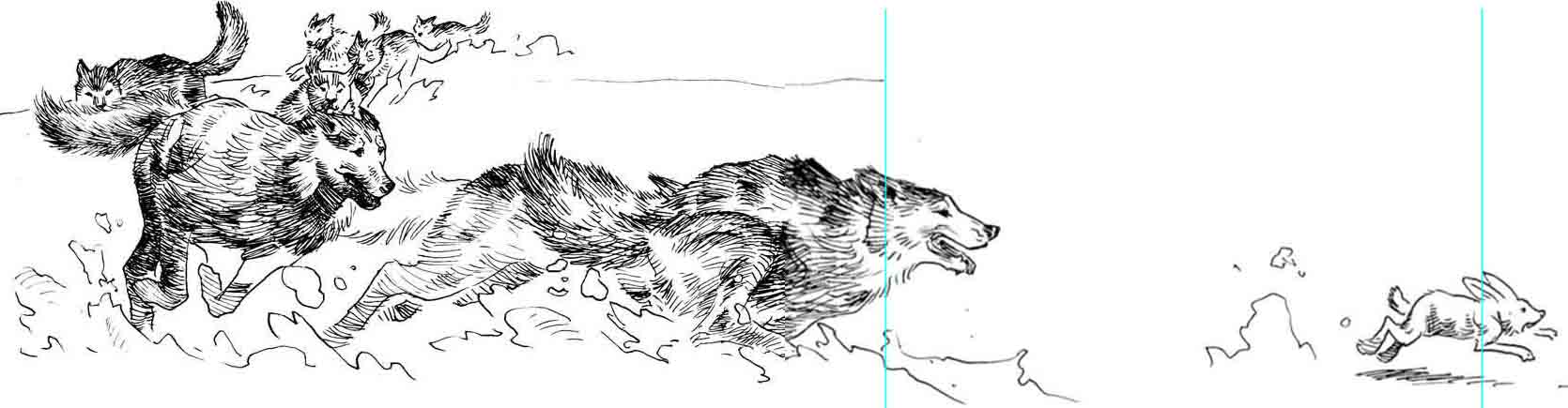 然而,就是在这样激动的状态中,斯匹茨依然没有丧失冷静算计的本事,在河道的一个大拐弯处,他突然甩开狗群,穿过一片狭窄的陆地,横插过来。布克对此全然不知,他沿着弯曲的河道继续追击。兔子幽灵一般的身影依然在前面飞驰,这时兔子突然看见另外一个白色的身影从头顶的河岸上跃下河道,正好挡在自己的逃跑路线上。原来是斯匹茨。兔子没法转身,当斯匹茨白色的牙齿在半空中咬断它的脊梁时,兔子发出了像人一样大声的惨叫。这是生命被死亡的魔掌从巅峰推下深渊时发出的叫喊,听到这声叫喊,布克身后所有的狗都兴奋起来,开始了地狱般的合唱。